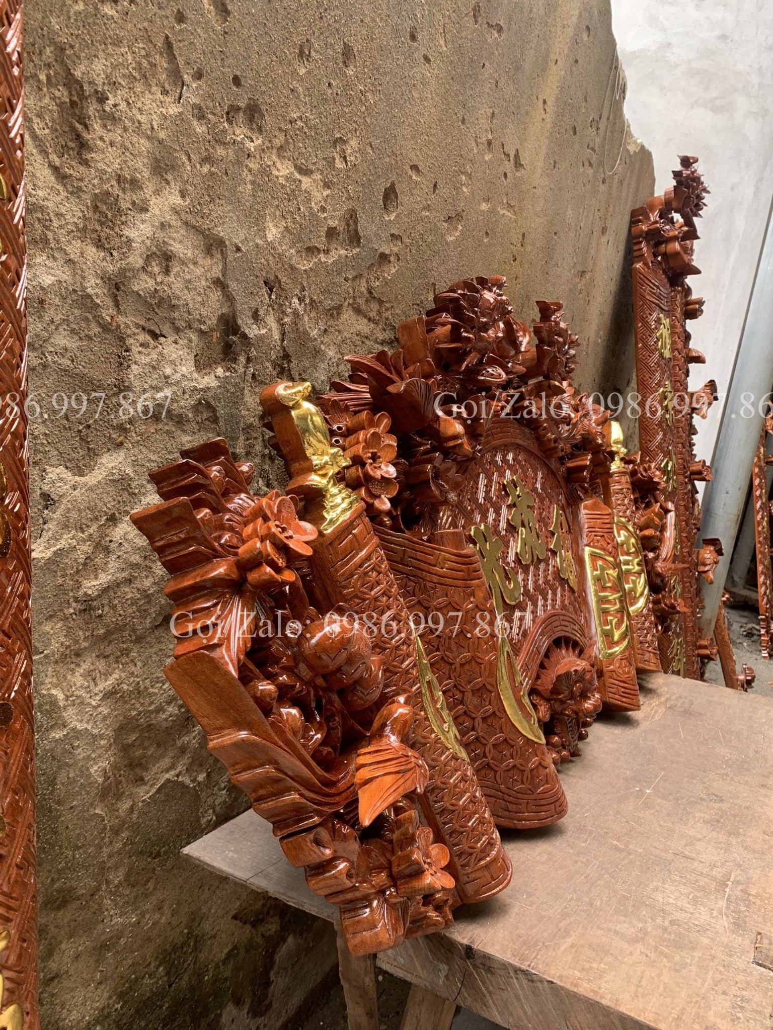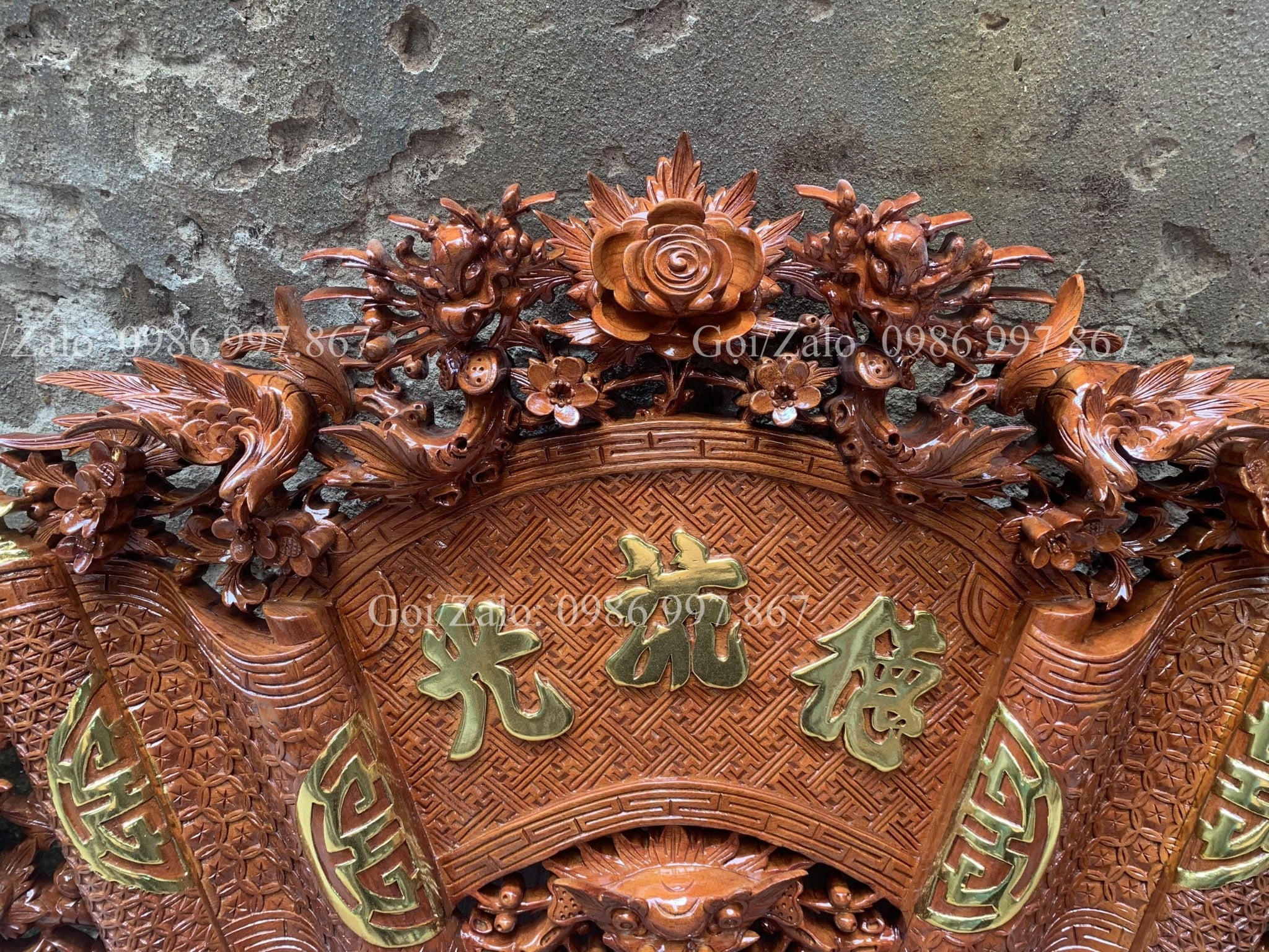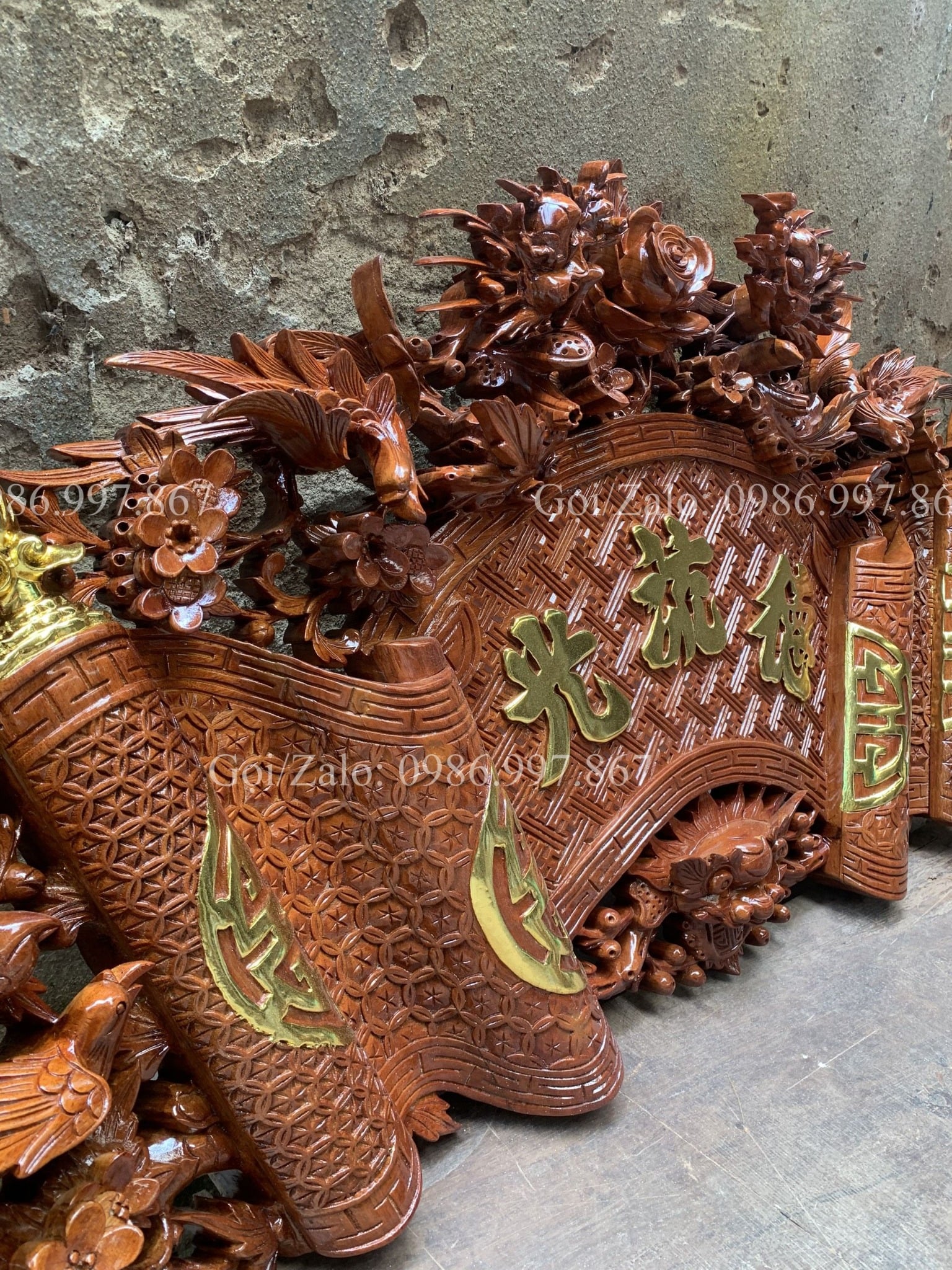 | Kích thước | - Cuốn Thư: Dài 140 - Rộng 61cm - Dày 4cm - Câu đối: Dài 155 - Rộng 28 - Dày 4cm |