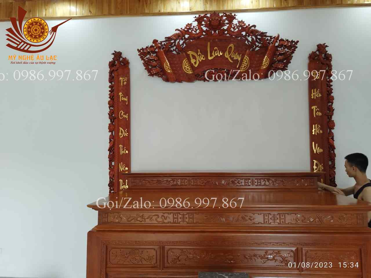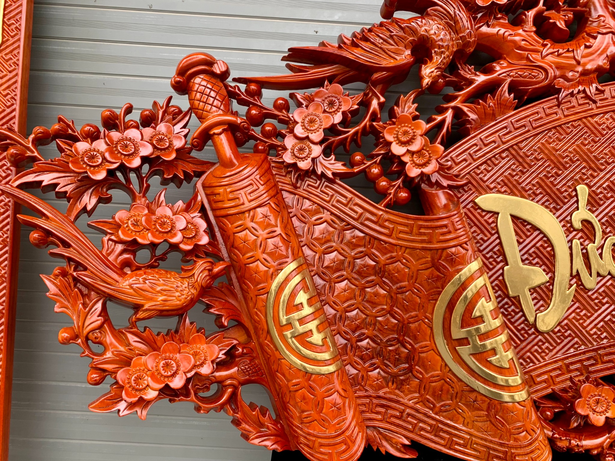 | Kích thước | - Cuốn Thư: Dài 197 - Rộng 87cm - Dày 4cm - Câu đối: Dài 197 - Rộng 28 - Dày 4cm |