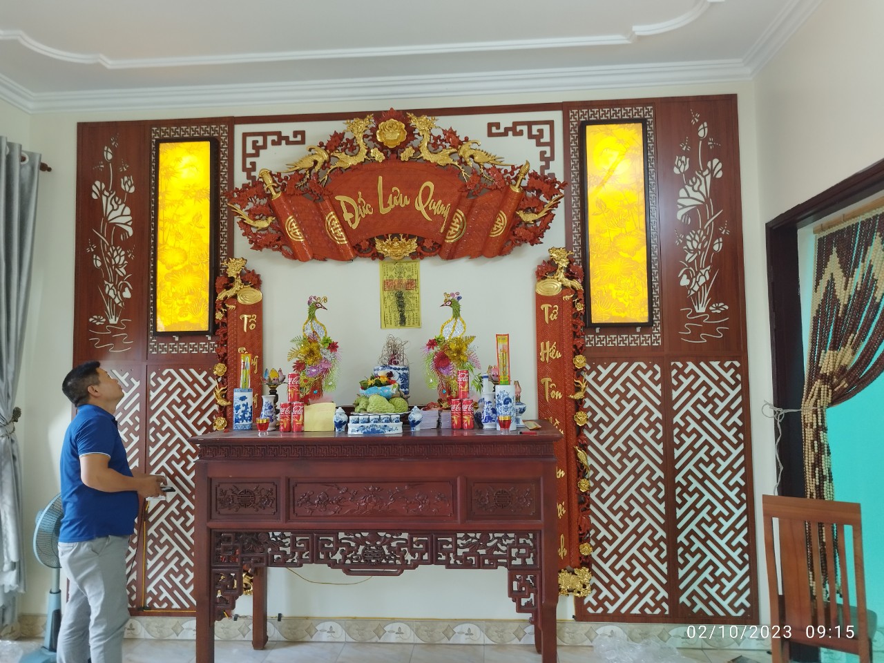 • Đối với nhà ở hiện đại ngày nay (nhà Ống, biệt thự, chung cư), các bạn nên treo cuốn thư câu đối gỗ ở chính giữa bàn thờ, cách mặt bàn thờ từ 80cm-1m. Đôi câu đối nên được treo ở hai bên tường và treo xuống dưới bức cuốn thư.