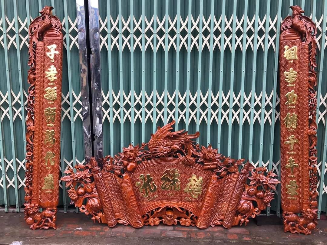| Quy cách | - Bộ cuốn thư được đục sắc nét, kênh bong Từng chi tiết trên bộ cuốn thư, được đục thủ công, tỷ mỷ - Đục chạm phượng - Gỗ nguyên khối |