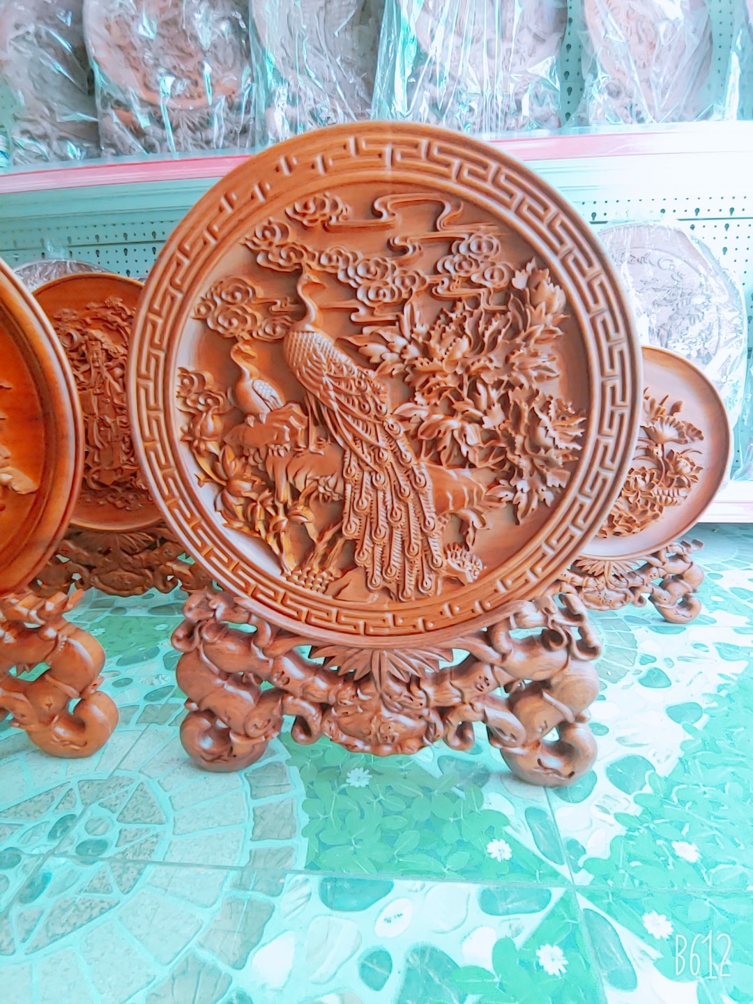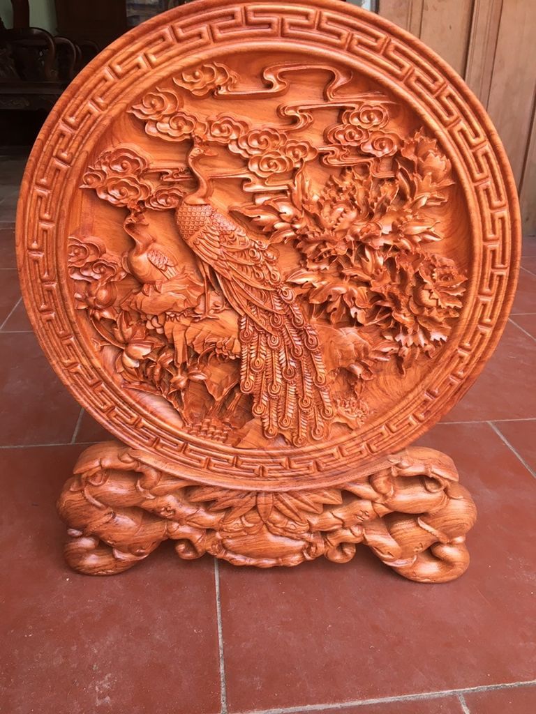| Quy cách | - Đĩa gỗ trang trí được đục máy và sửa tay sắc nét - Gỗ hương đá nguyên khối |