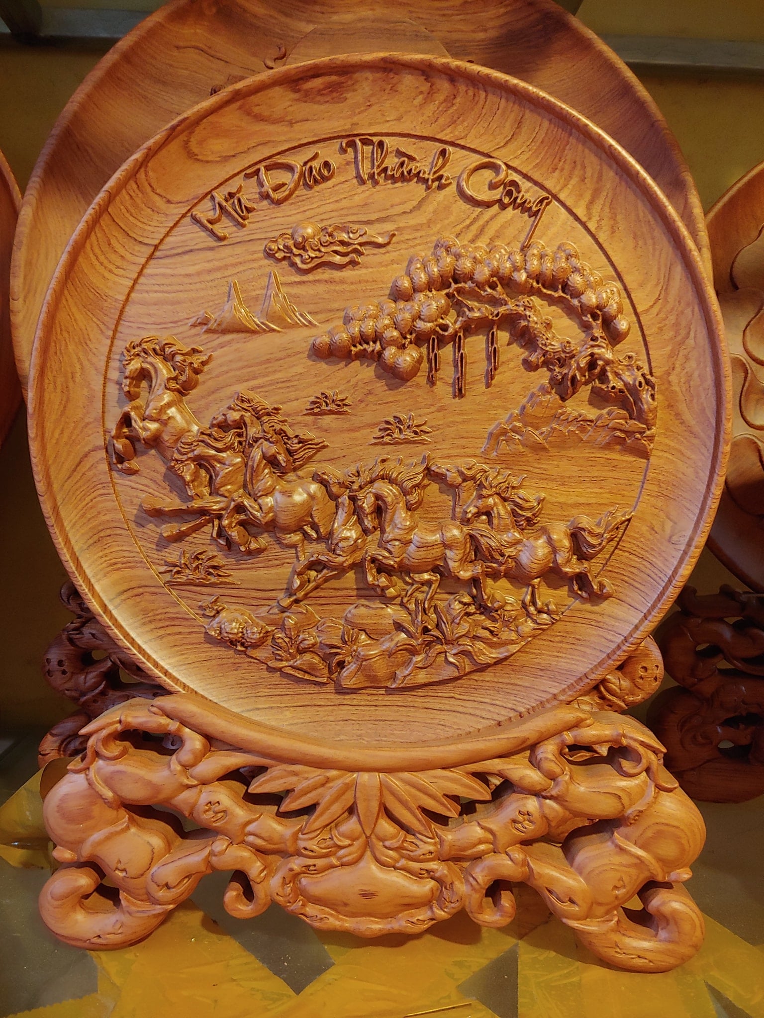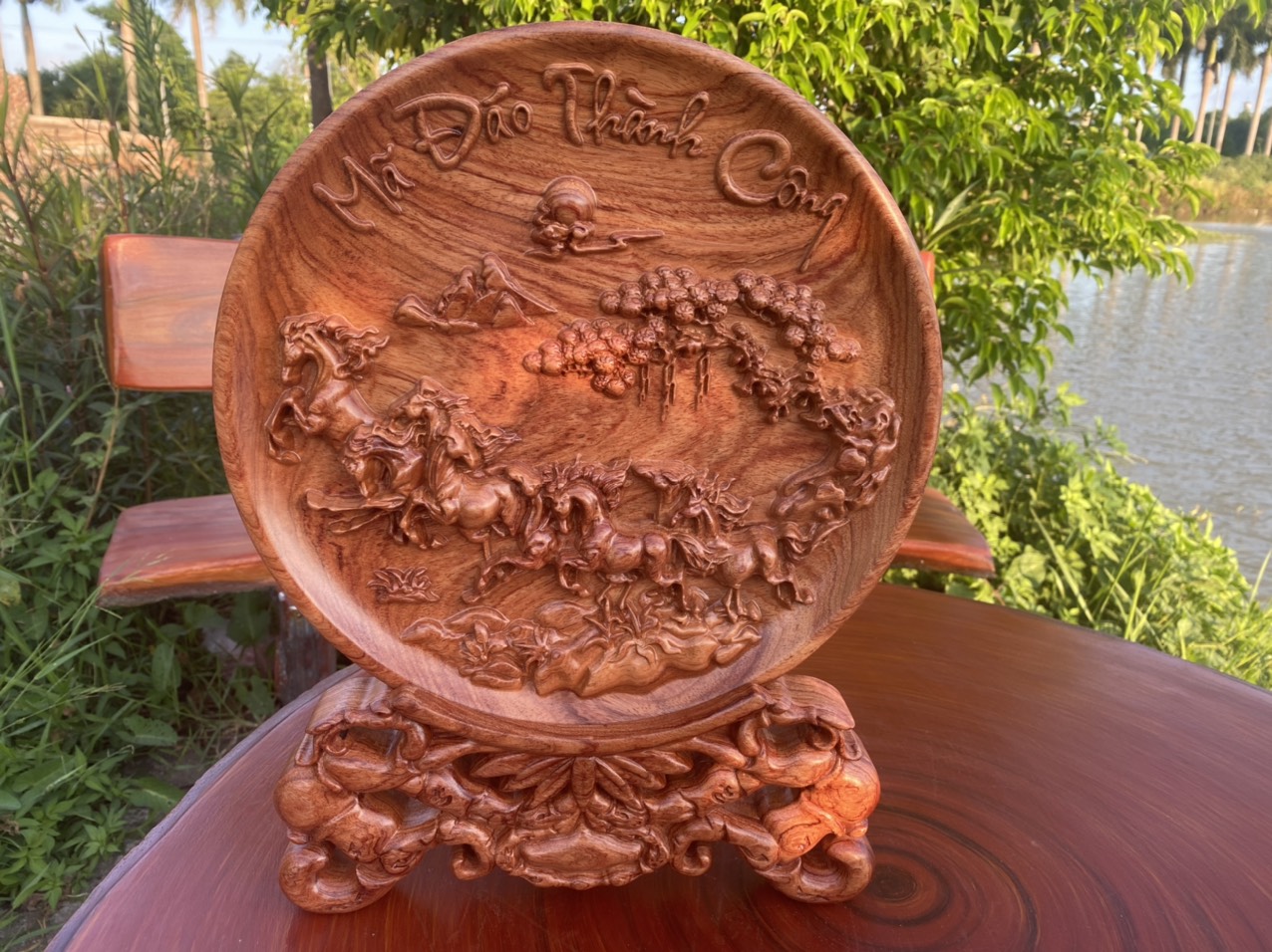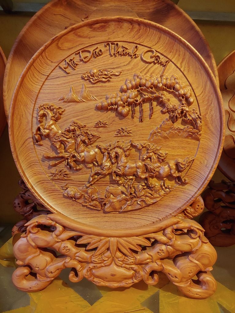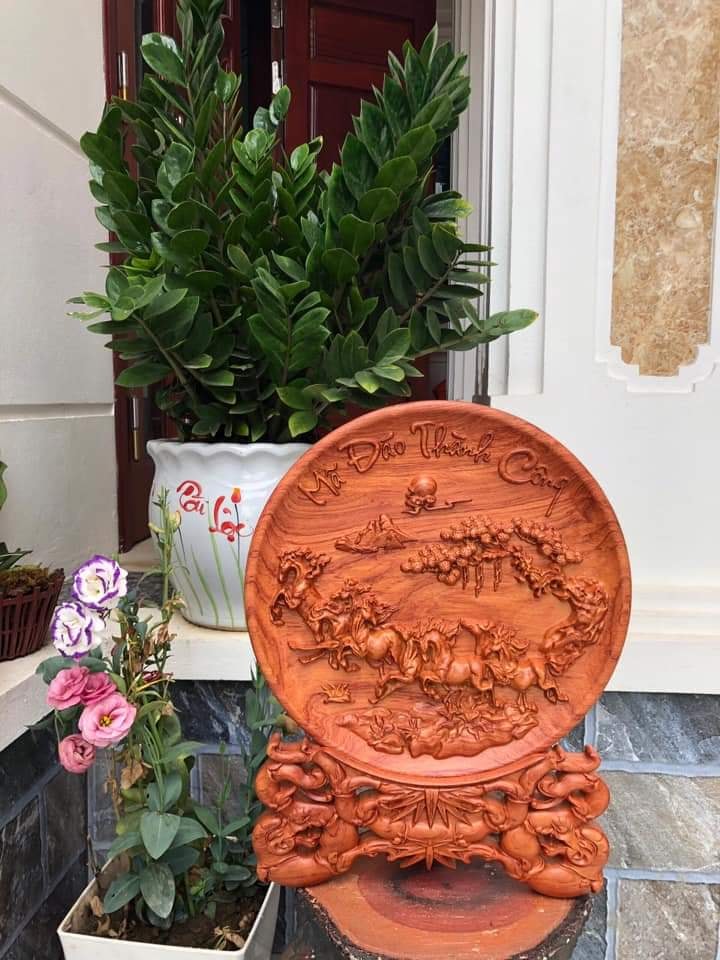 | Quy cách | - Đĩa gỗ trang trí được đục máy và sửa tay sắc nét - Gỗ hương đá nguyên khối |
