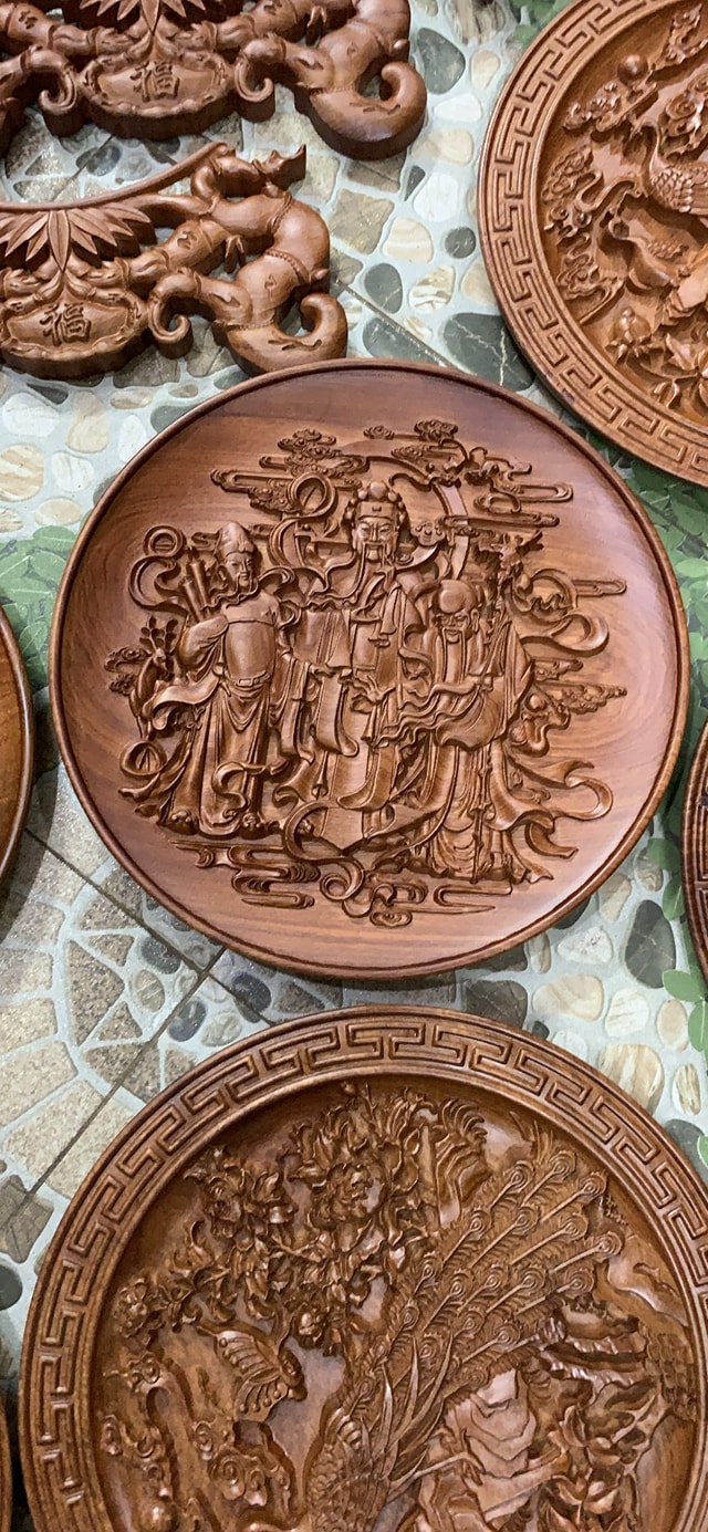 | Quy cách | - Đĩa gỗ trang trí được đục máy và sửa tay sắc nét - Gỗ hương đá nguyên khối |