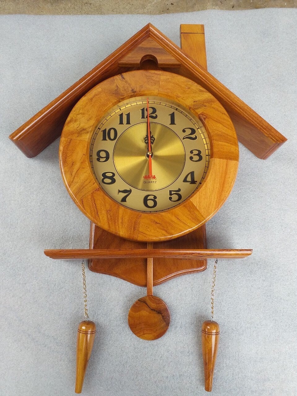 | Quy cách | - Đồng hồ gỗ trang trí được đục máy và sửa tay sắc nét dát vàng - Gỗ hương đá nguyên khối |