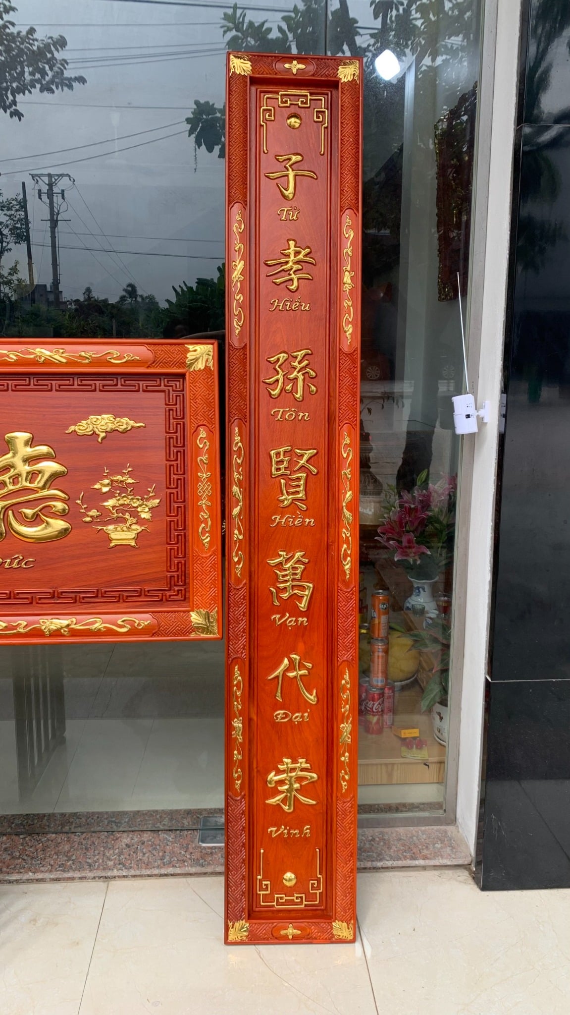 Hoành phi câu đối gỗ là vật phẩm trang trí cho gian thờ thêm phần sang trọng và linh thiêng. Nhìn vào bộ hoành phi gỗ với mẫu mã, hoa văn tỉ mỉ, tinh tế ta thấy được vẻ đẹp hoài cổ như gian thờ thời xưa của ông cha ta. Bộ hoành phi câu đối bằng gỗ thể hiện được gia phong của gia đình, dòng tộc, mang chuẩn mực, lối sống của người Việt ta.
