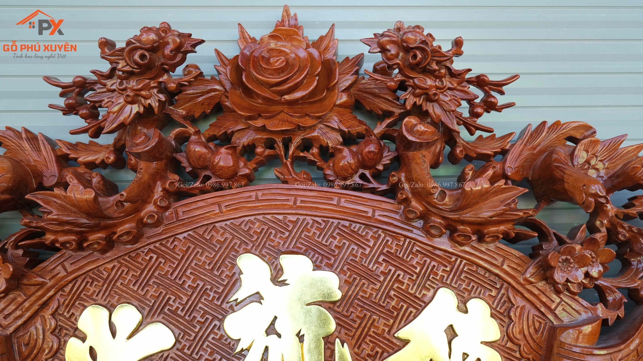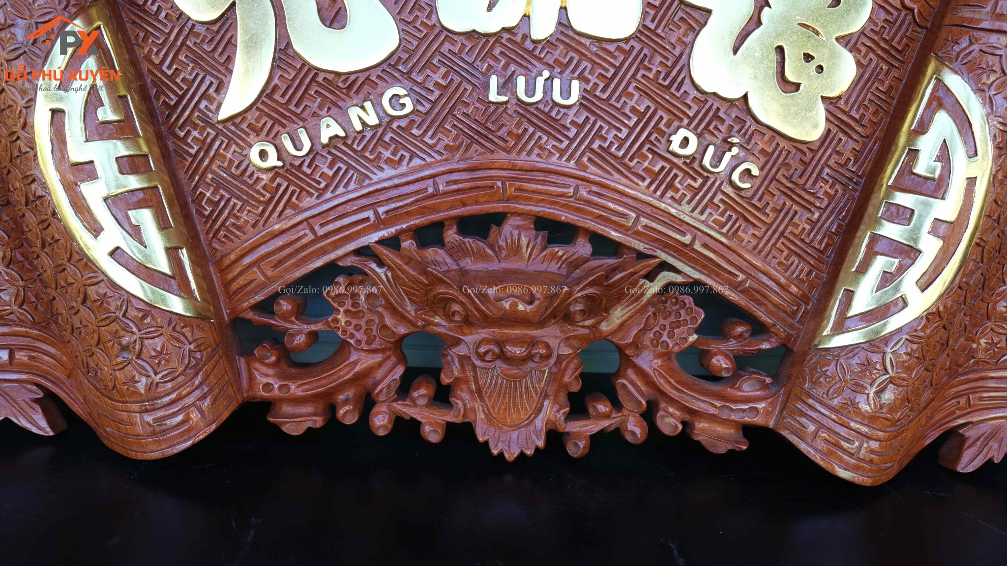 | Quy cách | - Bộ cuốn thư được đục sắc nét, kênh bong Từng chi tiết trên bộ cuốn thư, được đục thủ công, tỷ mỷ - Đục chạm rồng - Gỗ nguyên hương đá siêu vân - Câu đối NGUYÊN KHỐI |
