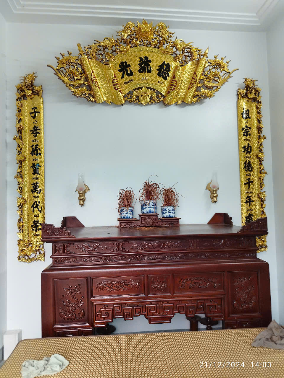 • Vị trí đễ treo cuốn thư câu đối gỗ là đặt ngay ngắn nơi chính giữa hoặc vị trí trang trọng của ngôi nhà trên bàn thờ chính và hướng ra bên ngoài cửa. Vị trí của cuốn thư câu đối cần được cố định và ít di chuyển tạo cảm giác trang nghiêm và bền vững.