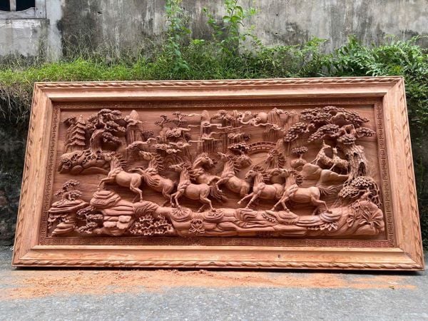 | Quy cách | - Tranh làm bằng ván gỗ nguyên tấm, vân gỗ tự nhiên đẹp mắt - Khung tranh bản 10 - Ván liền, khung ghép - Đục sắc nét từ đôi bàn tay nghệ nhân nổi tiếng tạo nên thần thái của bức tranh |