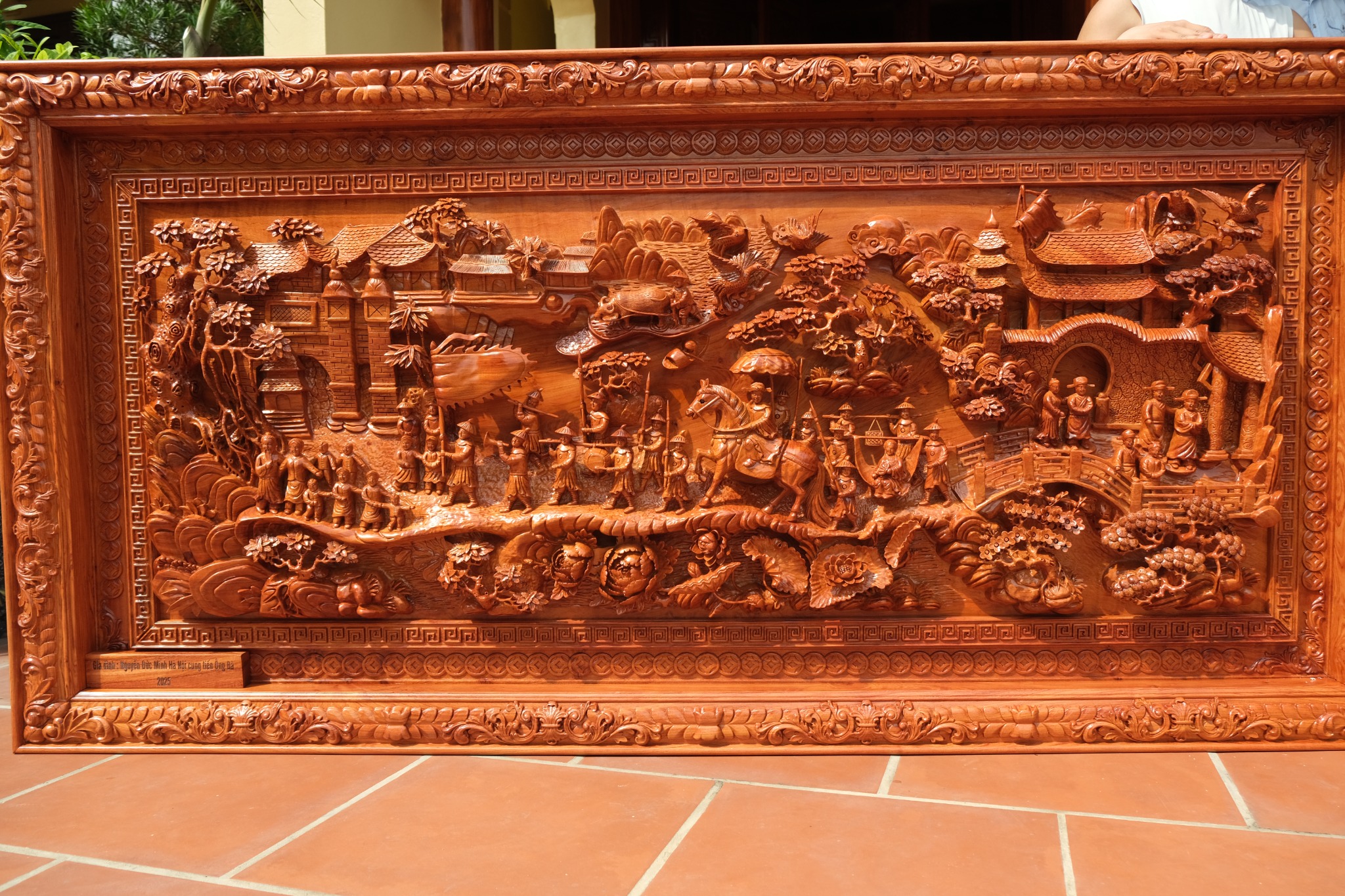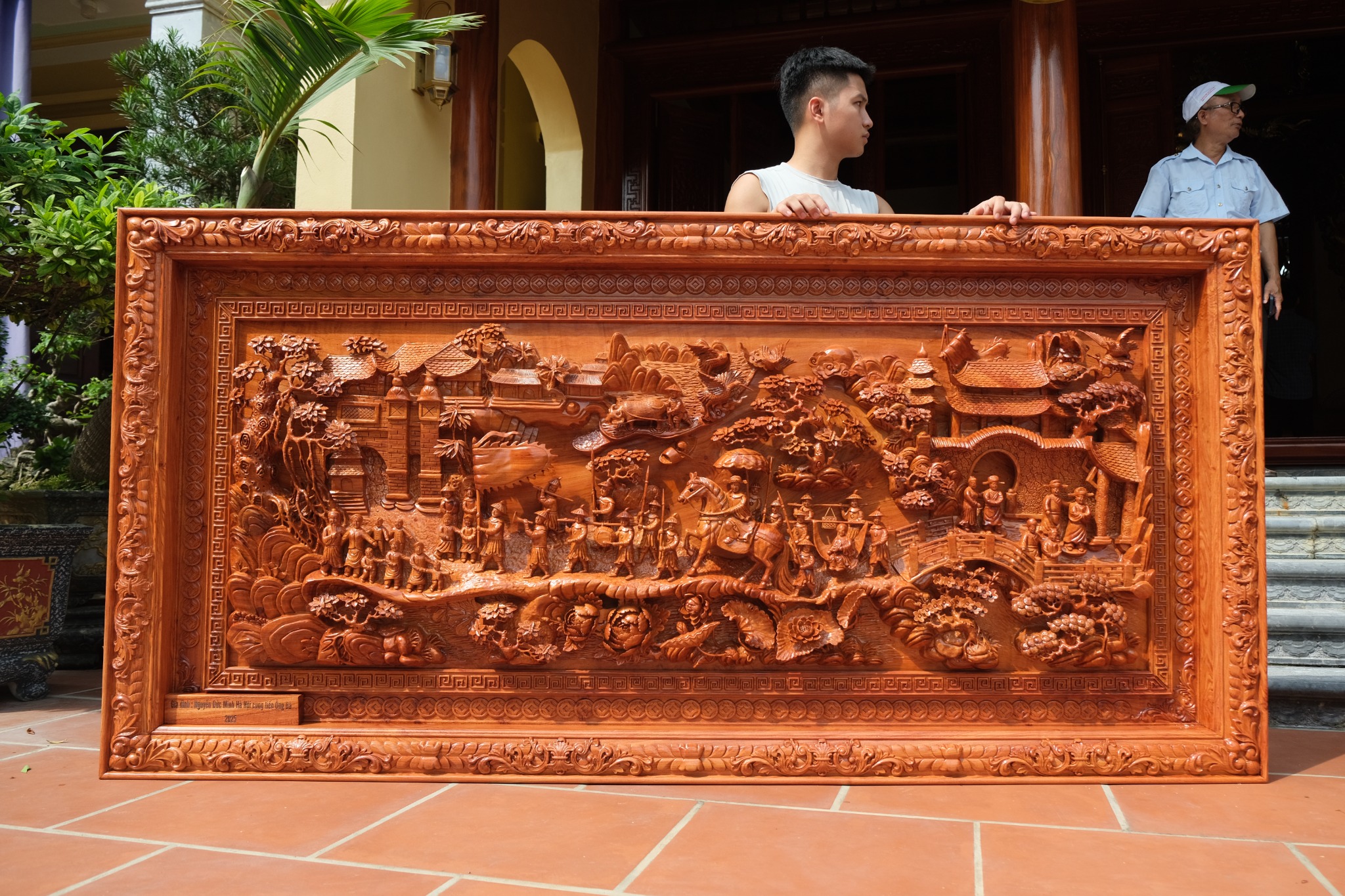 • Tranh gỗ vinh quy bái tổ được người nghệ nhân chạm khắc tỉ mỉ đến từng chi tiết. Bề mặt được mài nhẵn thẩm mĩ mà không hề "thô" như mọi người vẫn thường nghĩ. Hơn thế, bên ngoài được bao bọc bởi khung gỗ được phủ sơn chuyên dụng đảm bảo sự cân đối cho sản phẩm.