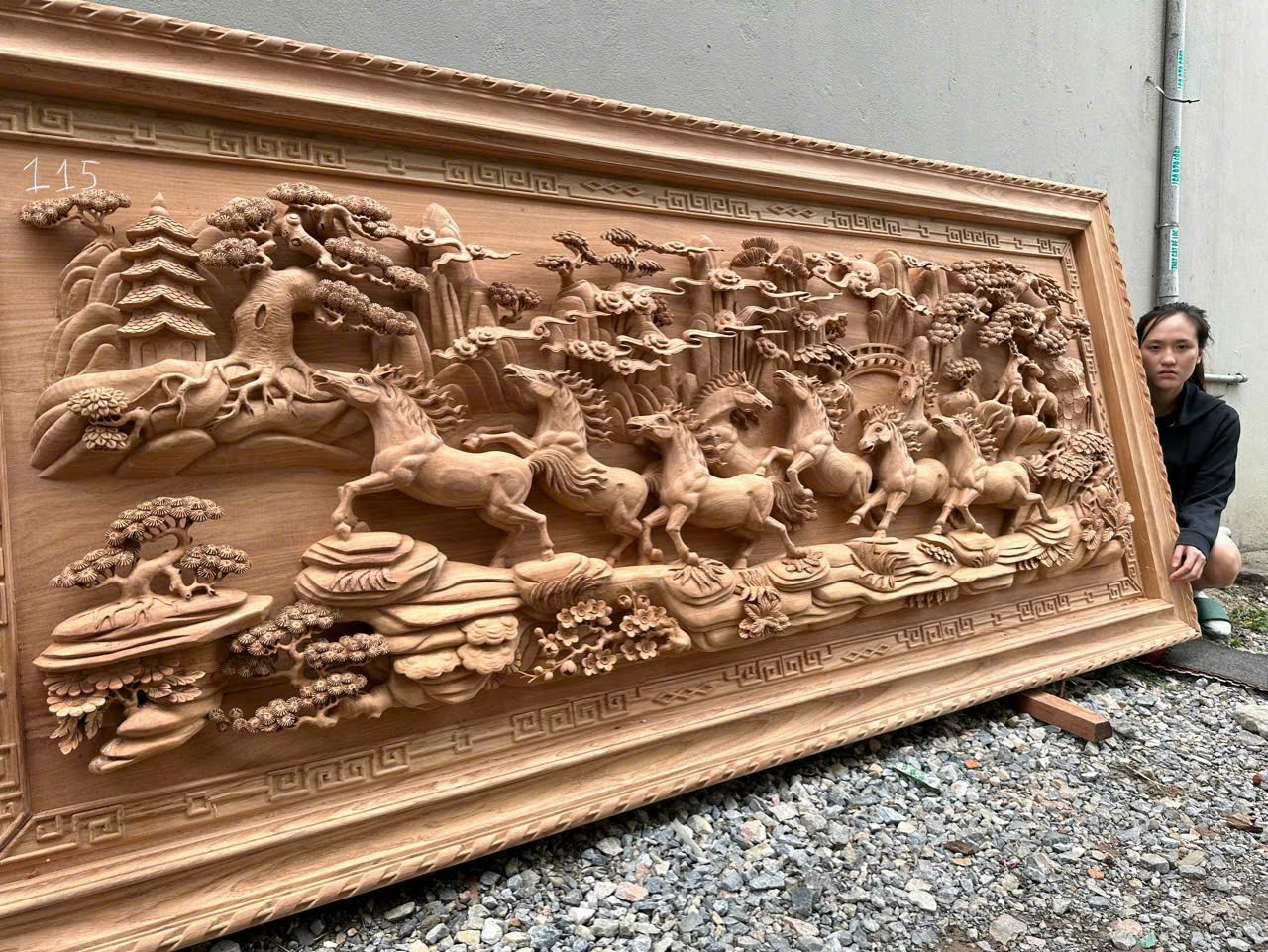 | Quy cách | - Tranh làm bằng ván gỗ nguyên tấm, vân gỗ tự nhiên đẹp mắt - Khung tranh bản 10 - Ván liền, khung ghép - Đục kênh bong sắc nét từ đôi bàn tay nghệ nhân nổi tiếng tạo nên thần thái của bức tranh |
