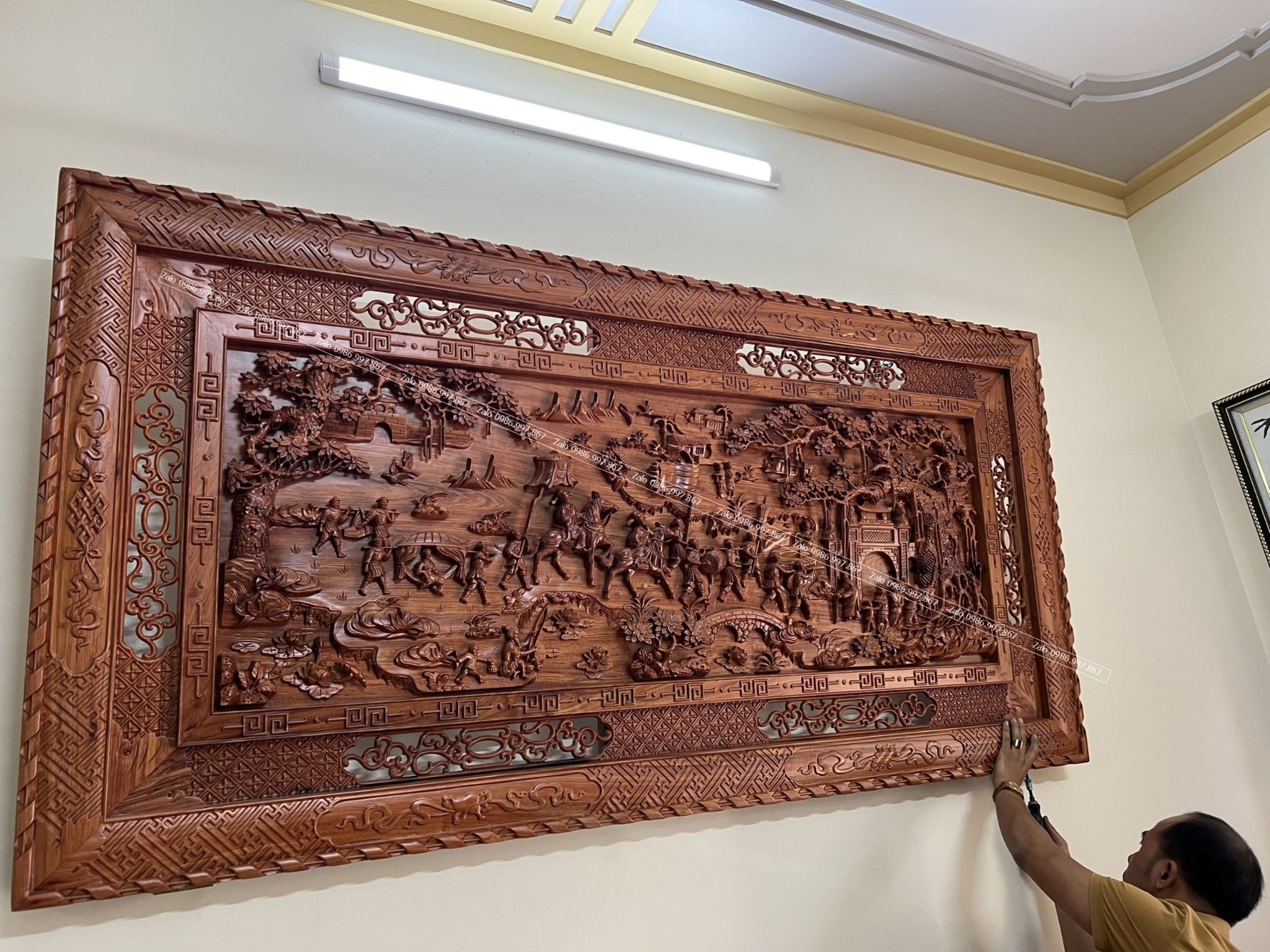 | Quy cách | - Tranh được đục và sửa tay sắc nét - Khung ghép, ván liền khối - Gỗ chuẩn, không rác, không cong vênh, bảo hành gỗ 10 năm - Khung đơn |