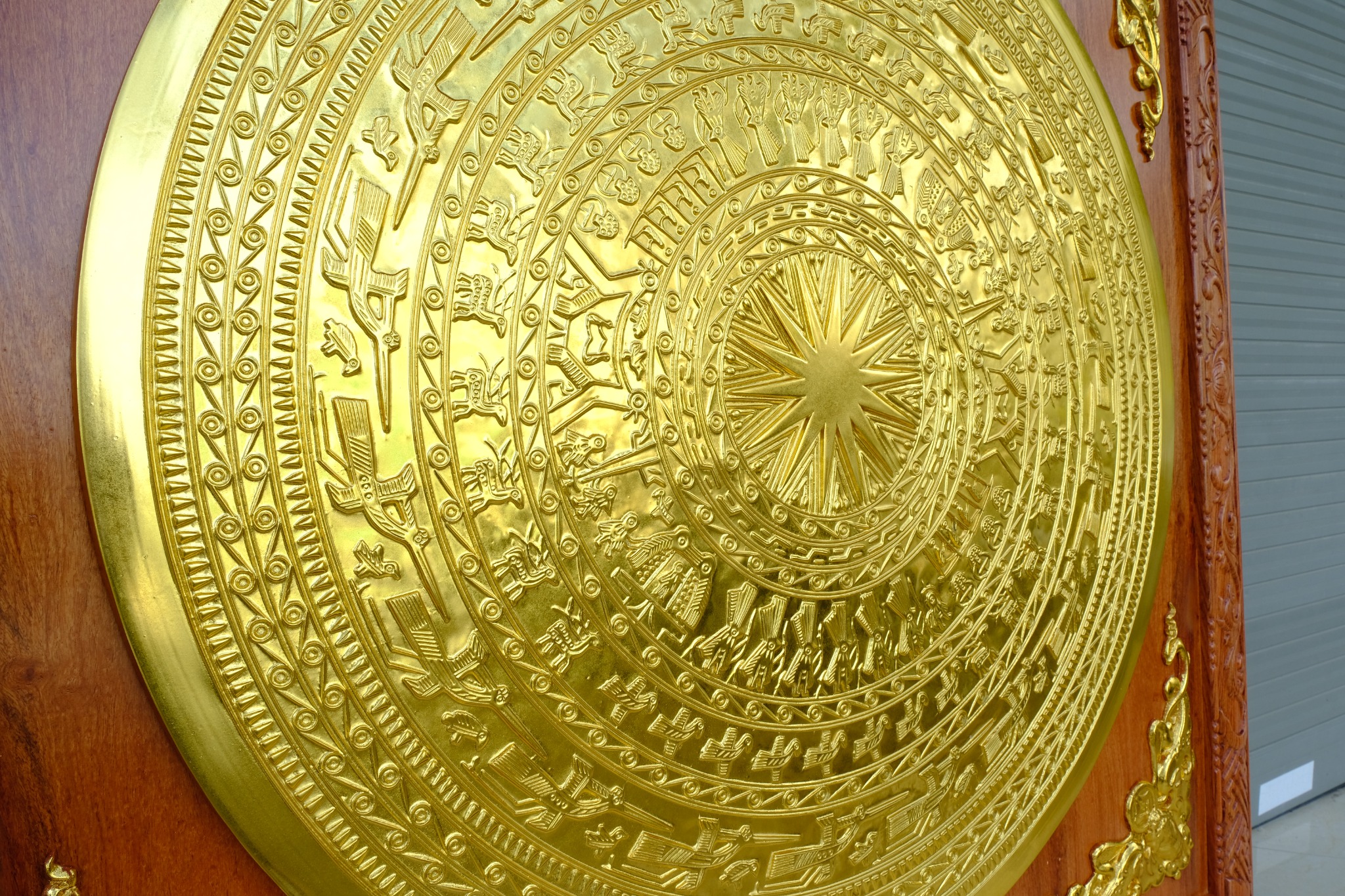 | Chất liệu | - Khung gỗ được làm bằng gỗ hương đá - Mặt trống được đúc bằng đồng đỏ nguyên khối, đường kính 80cm |