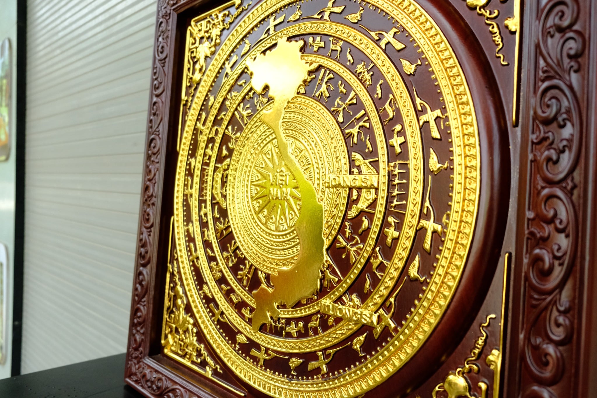 • Tranh trống đồng là hình ảnh biểu tượng của dận tộc Việt Nam. Chính vì vậy nên chọn vị trí sang trọng, linh thiêng để trang trí hoặc treo tranh trống.
