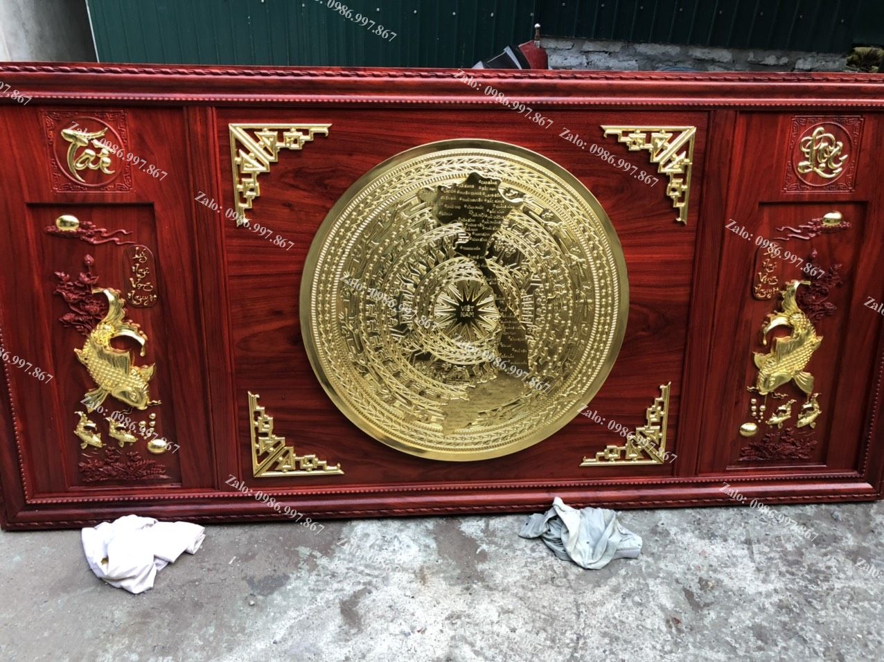 | Quy cách | - Khung tranh làm bằng gỗ hương đỏ Nam Phi, dày 4.5cm - Đôi bình sen đục liền khối, kênh bong - Mặt trống được làm bằng đồng đỏ đúc thủ công, hàng liền khối. Bảo hành chất lượng đồng vĩnh viễn - Toàn bộ được dát vàng 18K |
