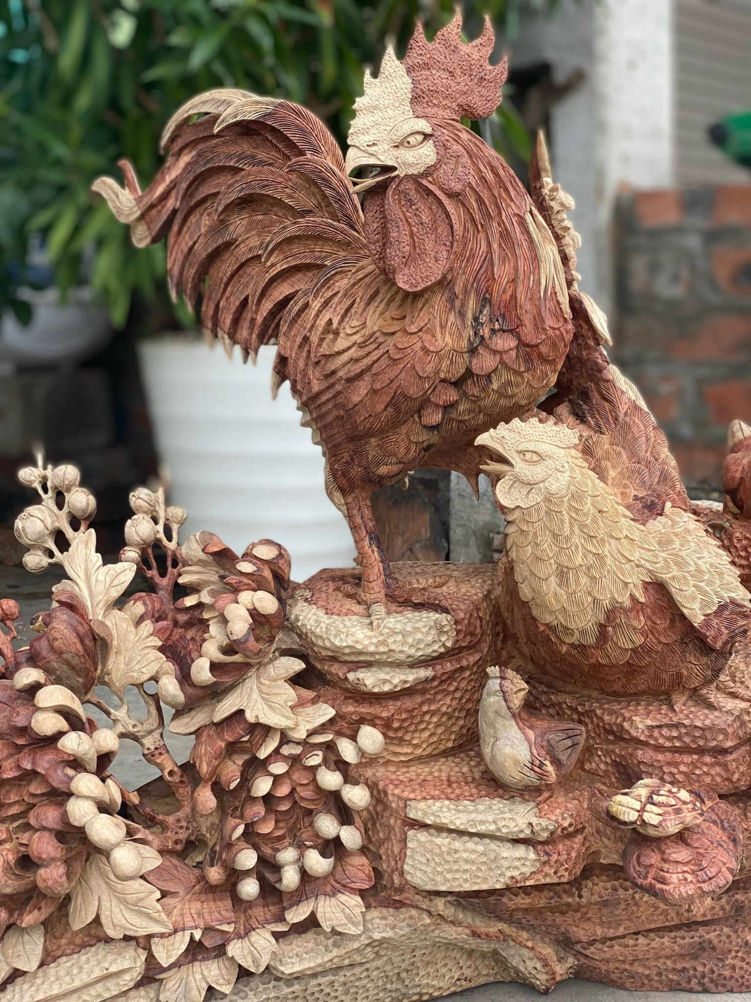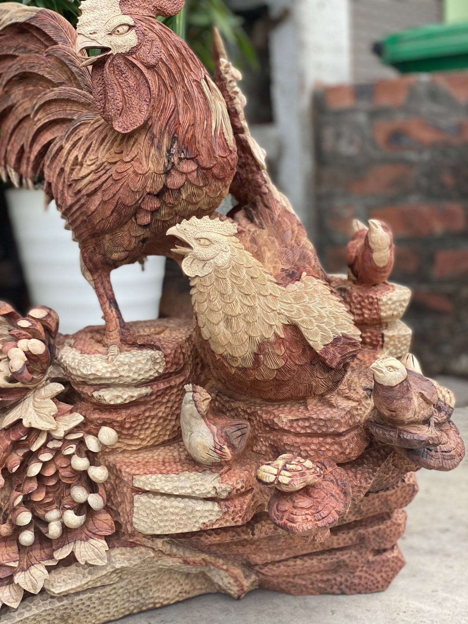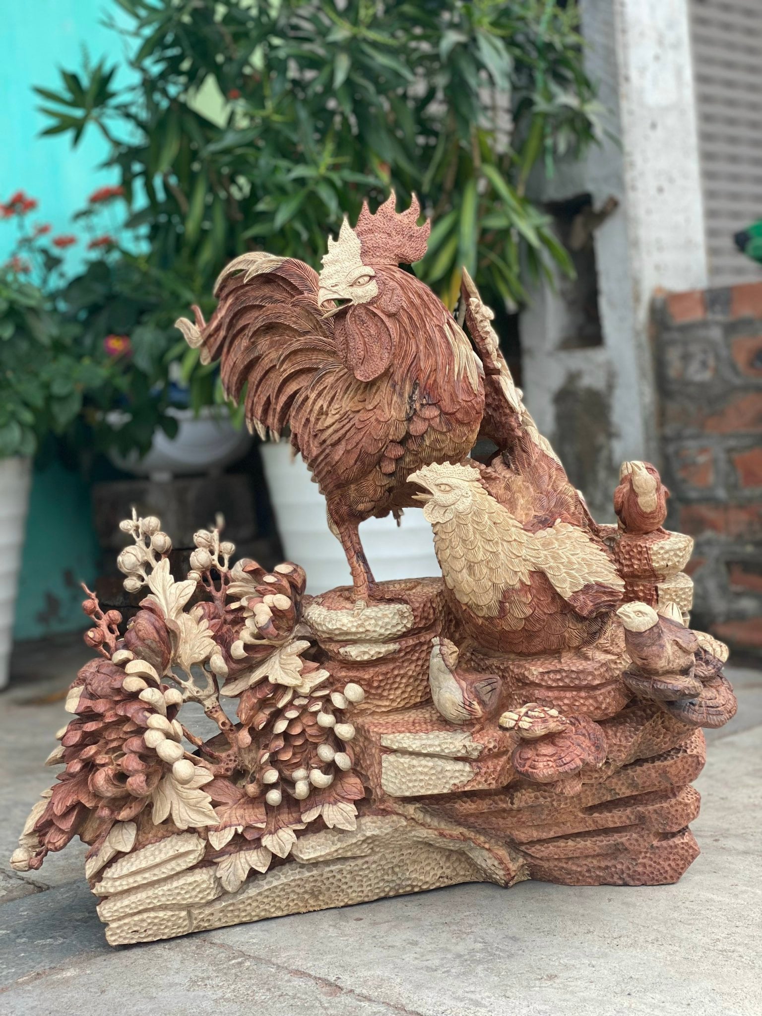 Chất Liệu Gỗ | Gia đình gà gỗ hương liền khối |